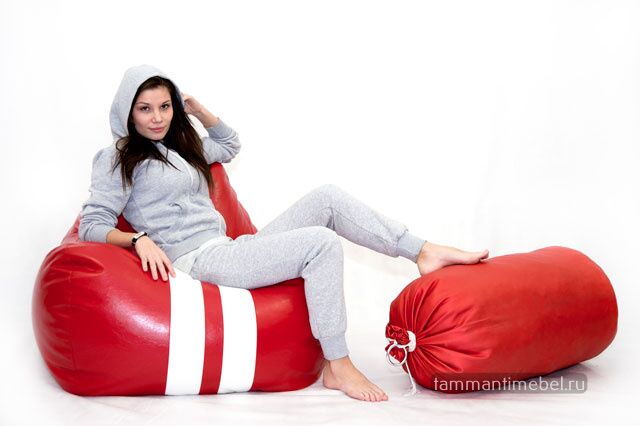 Кресло-пуф спортивного дизайна никого не оставит равнодушным! Спинка кресла отлично удерживает поясницу, а подлокотники позволят расслабиться рукам и плечам. Кресла изготавливаются из эко-кожи нового поколения с функцией легкой очистки: теперь Вы без труда сможете избавиться даже от следов шариковой ручки одной влажной салфеткой!